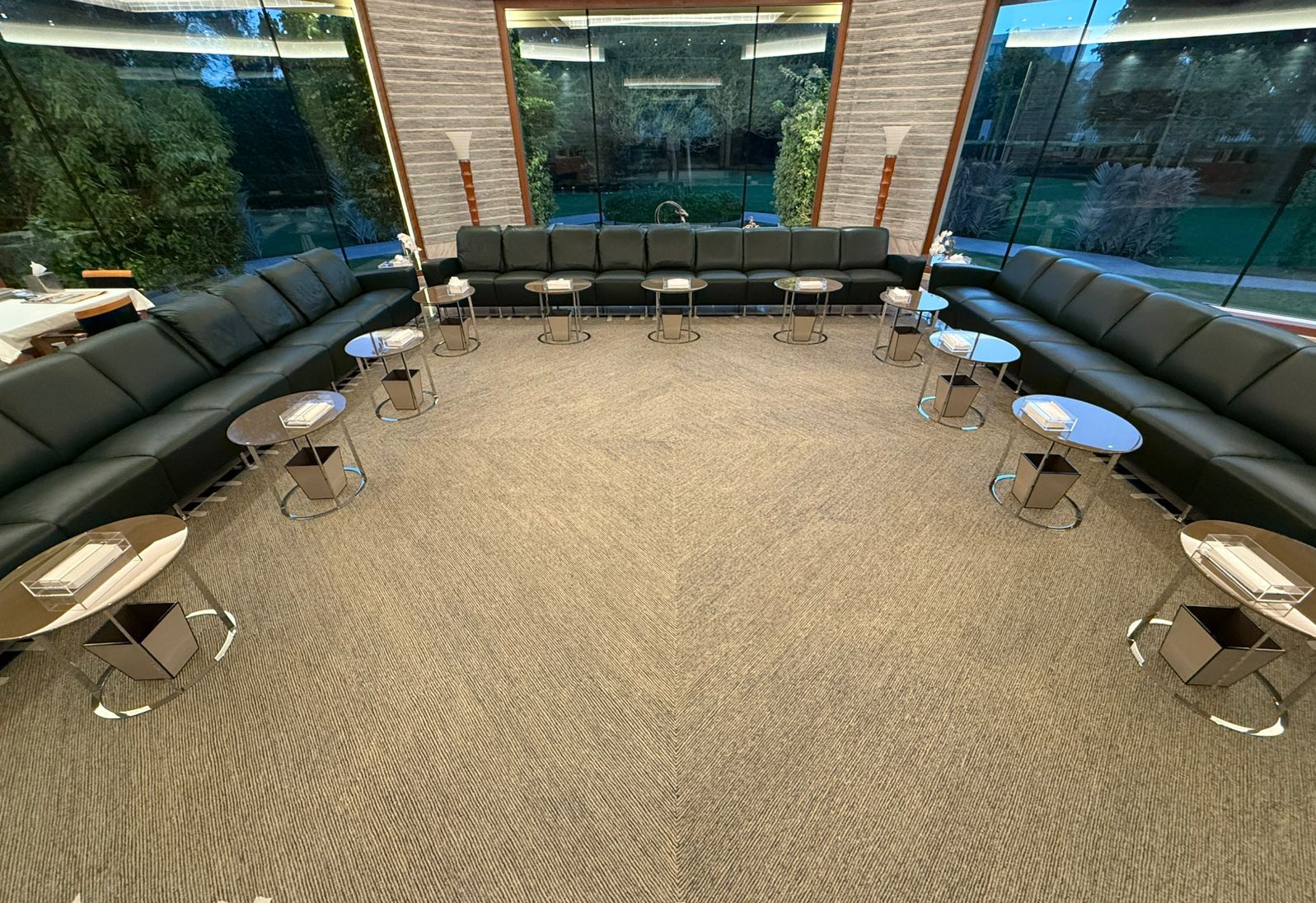 Luxurious wall-to-wall carpet commercial project installation in a modern living room by Ramsha Carpets