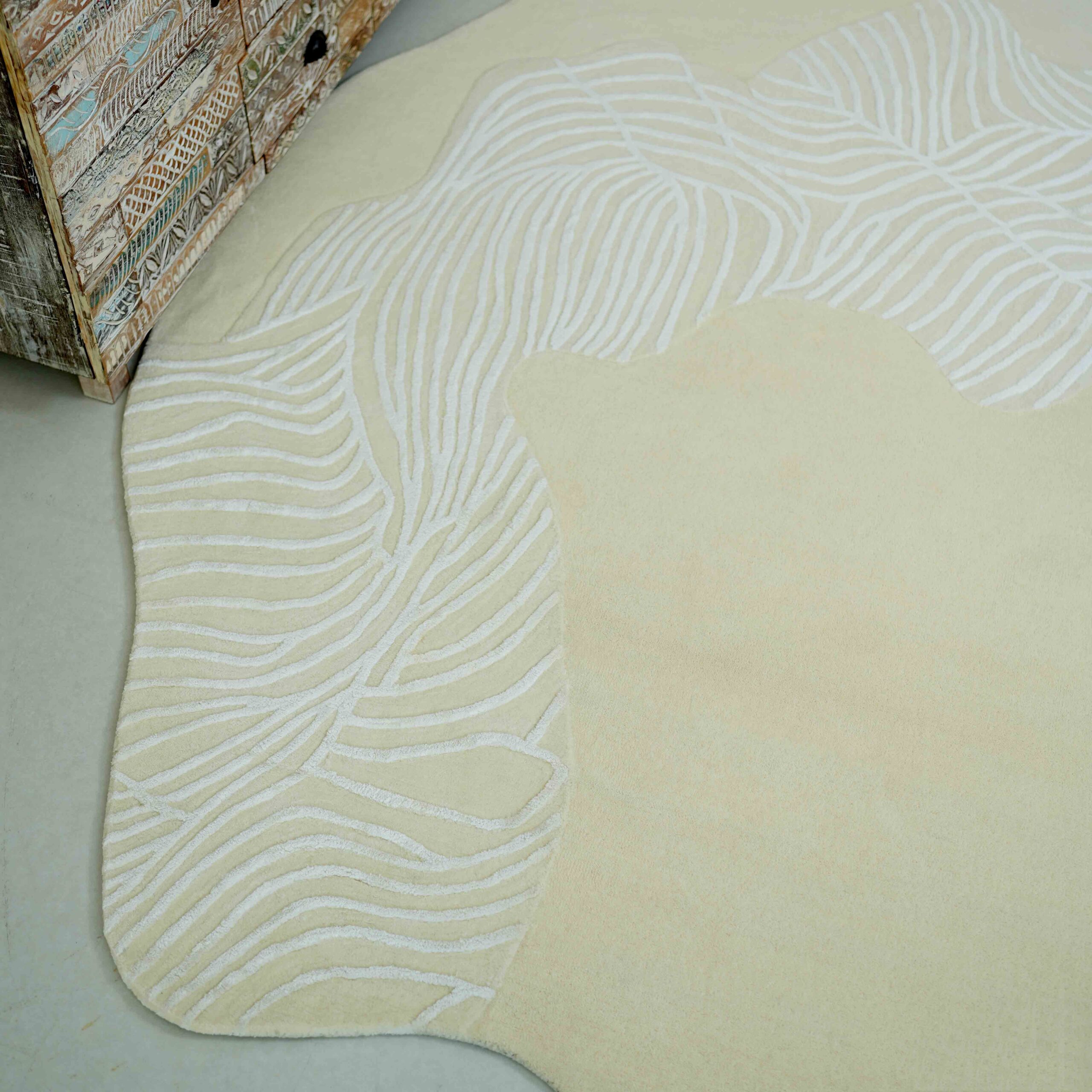 The botanical flow rug draws inspiration from the organic curves and flowing lines of plant life—bringing an almost meditative quality into your space. Its subtle patterns mimic nature’s gentle movement, creating a calming aesthetic that promotes relaxation and visual harmony.